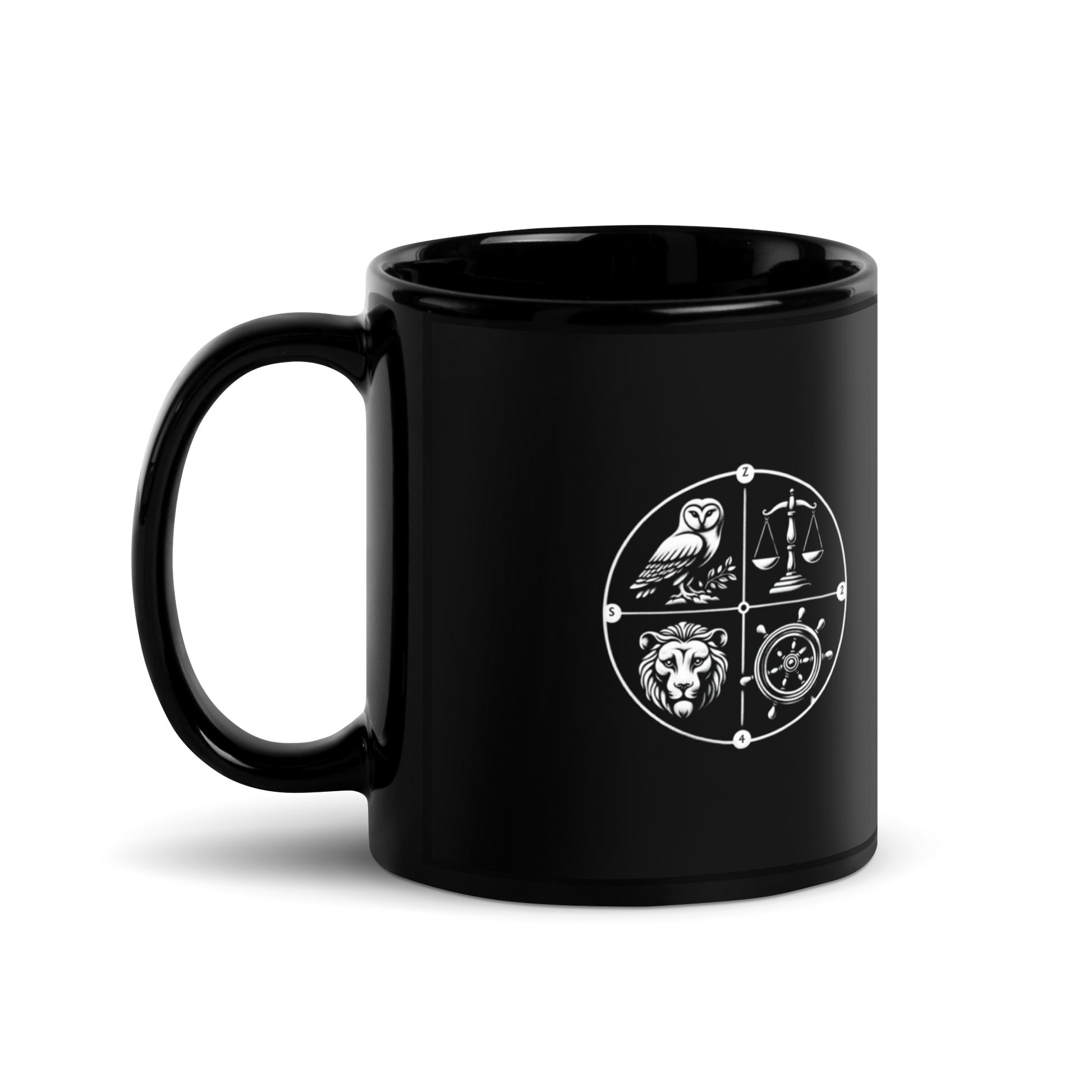 Jede Tugend ist liebevoll durch ein Symbol dargestellt: Weisheit durch eine Eule, Gerechtigkeit durch eine Waage, Mut durch einen Löwen und Mäßigung durch ein Steuerrad. Das minimalistische Design aus klaren weißen Linien auf tiefschwarzem Hintergrund verleiht der Tasse eine moderne und zugleich zeitlose Ästhetik. Mit jedem Kaffee- oder Teemoment wirst du an die Grundsätze erinnert, die deine Handlungen leiten sollten.